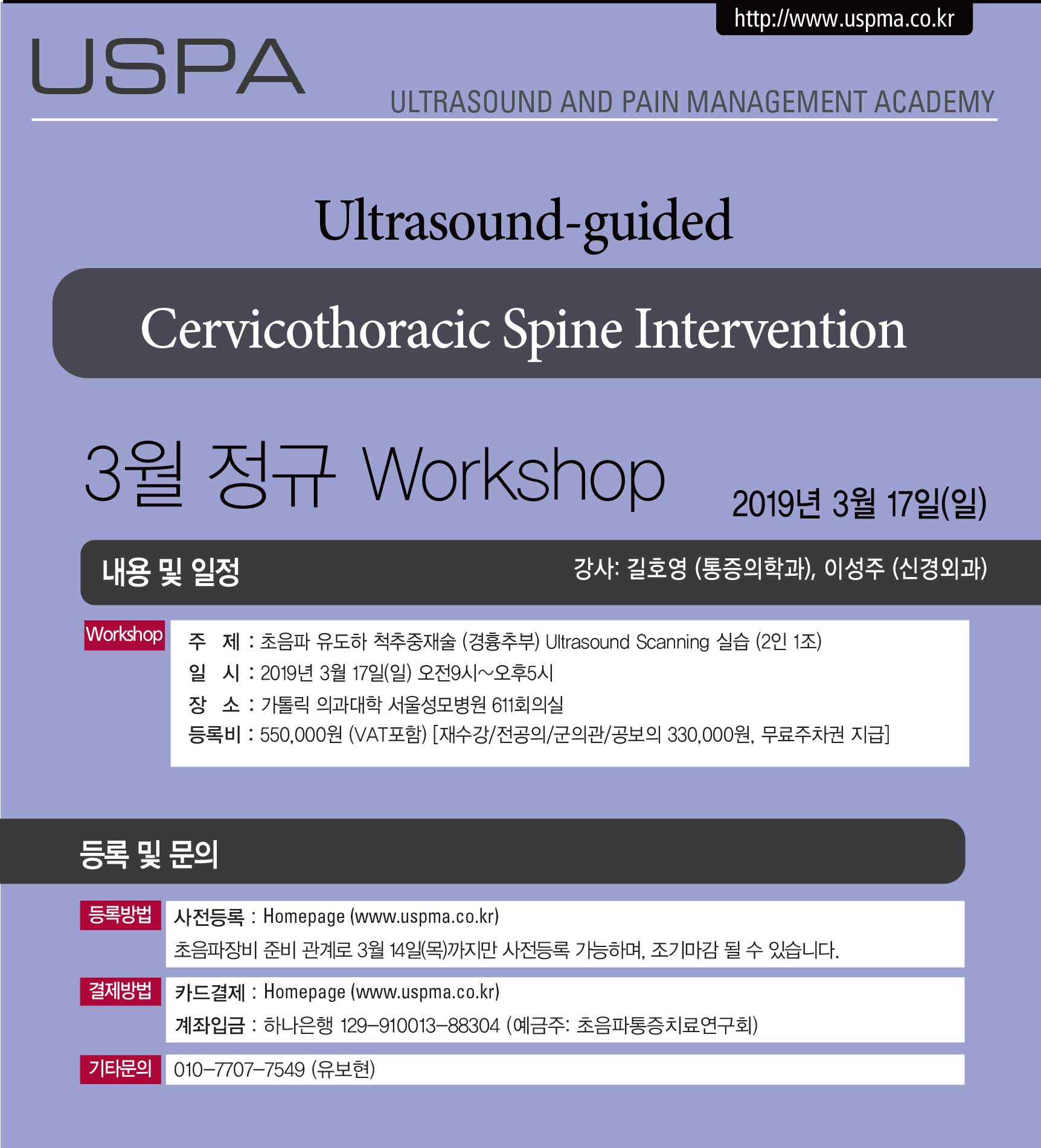 [초음파워크샵] [3월17일(일)] Ultrasound-guided Cervicothoracic Spine Intervention