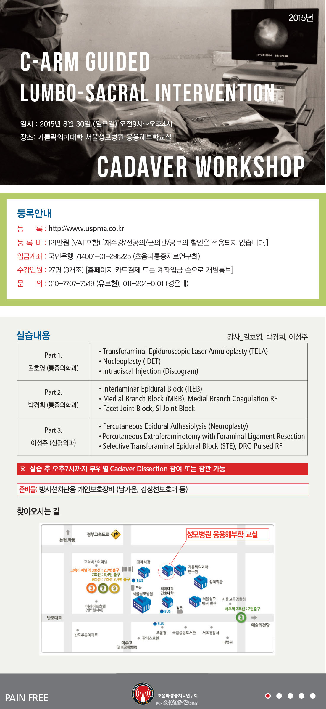 [카데바워크샵] [8월30일(일)] Cadaver Workshop; C-Arm guided Lumbo-sacral Spine Intervention