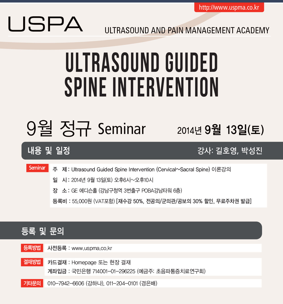 [초음파세미나] [9월13일(토)] 초음파 유도하 척추중재술 세미나