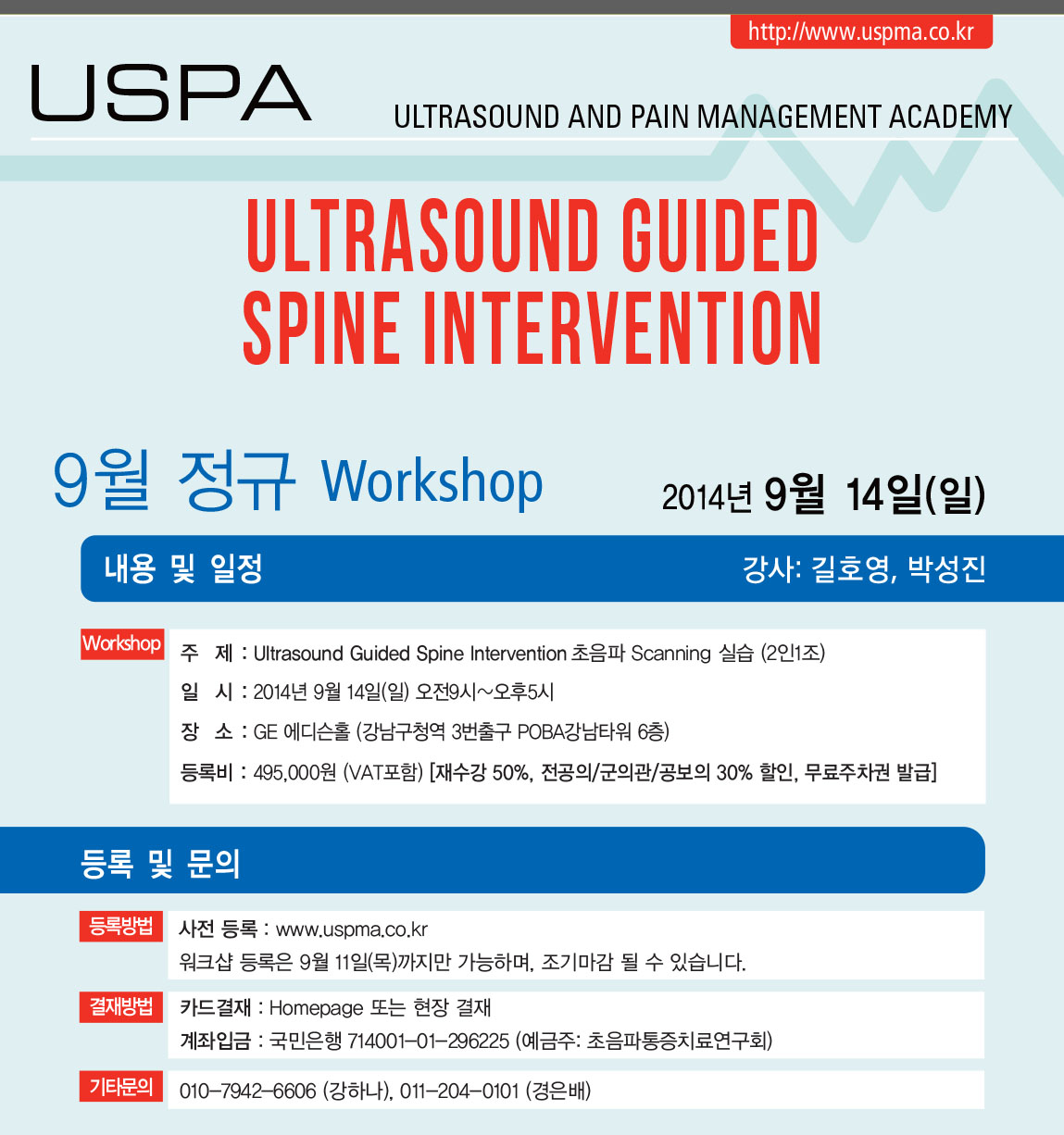 [초음파워크샵] [9월14일(일)] 초음파 유도하 척추중재술 워크샵