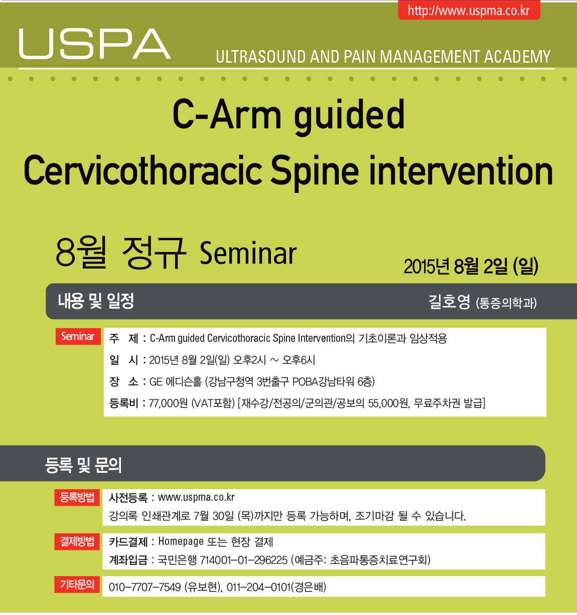 [C-arm세미나] [8월2일(일)오후] C-Arm guided Cervicothoracic Spine Intervention
