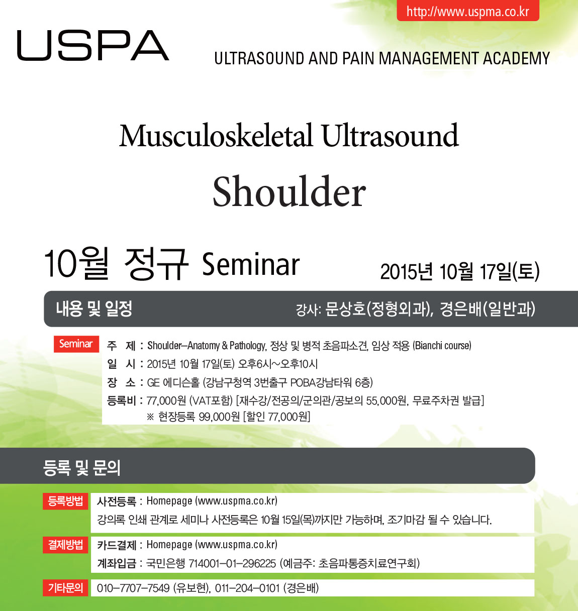 [초음파세미나] [10월17일(토)] 근골격계 초음파 세미나 - Shoulder