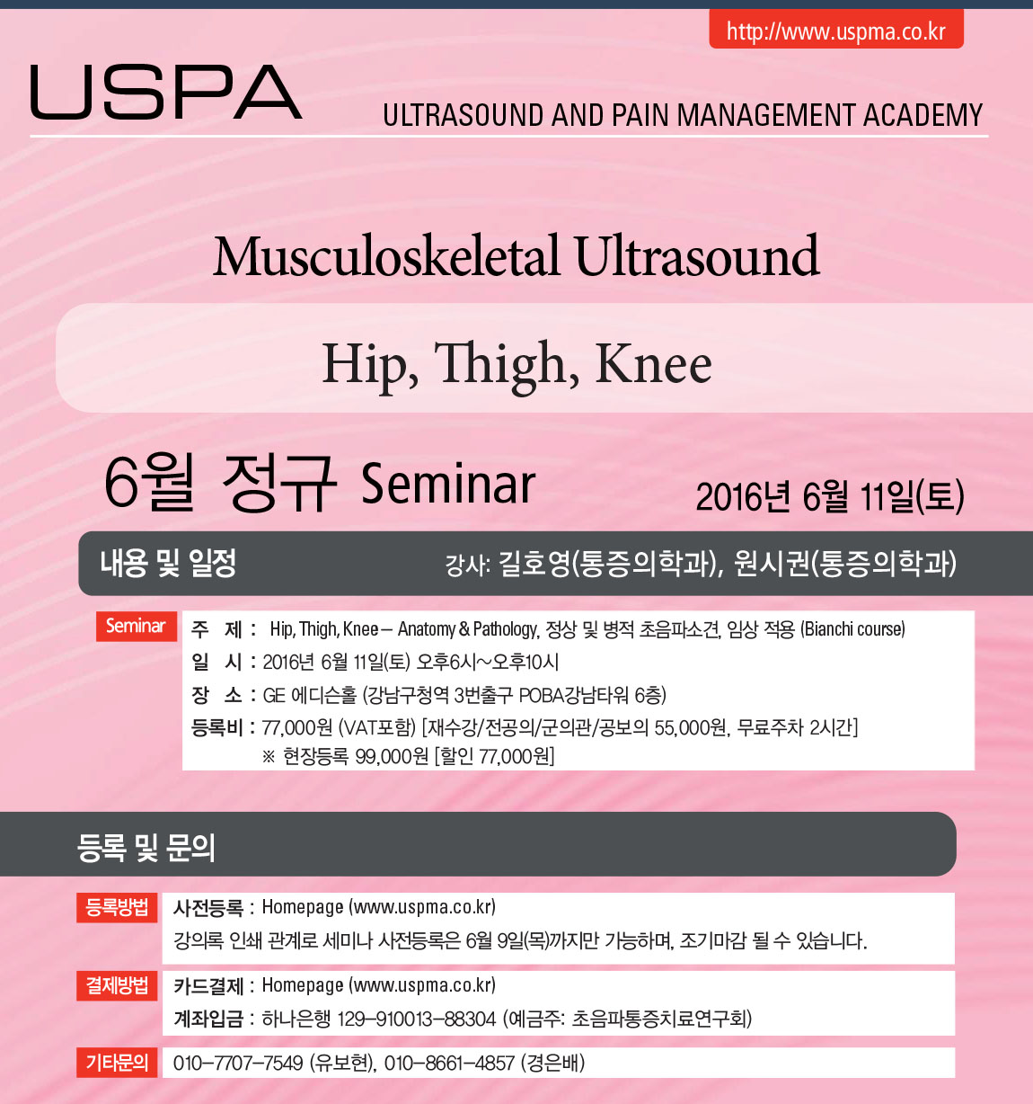 [초음파세미나] [6월11일(토)] 근골격계 초음파 세미나 - Hip, Thigh, Knee