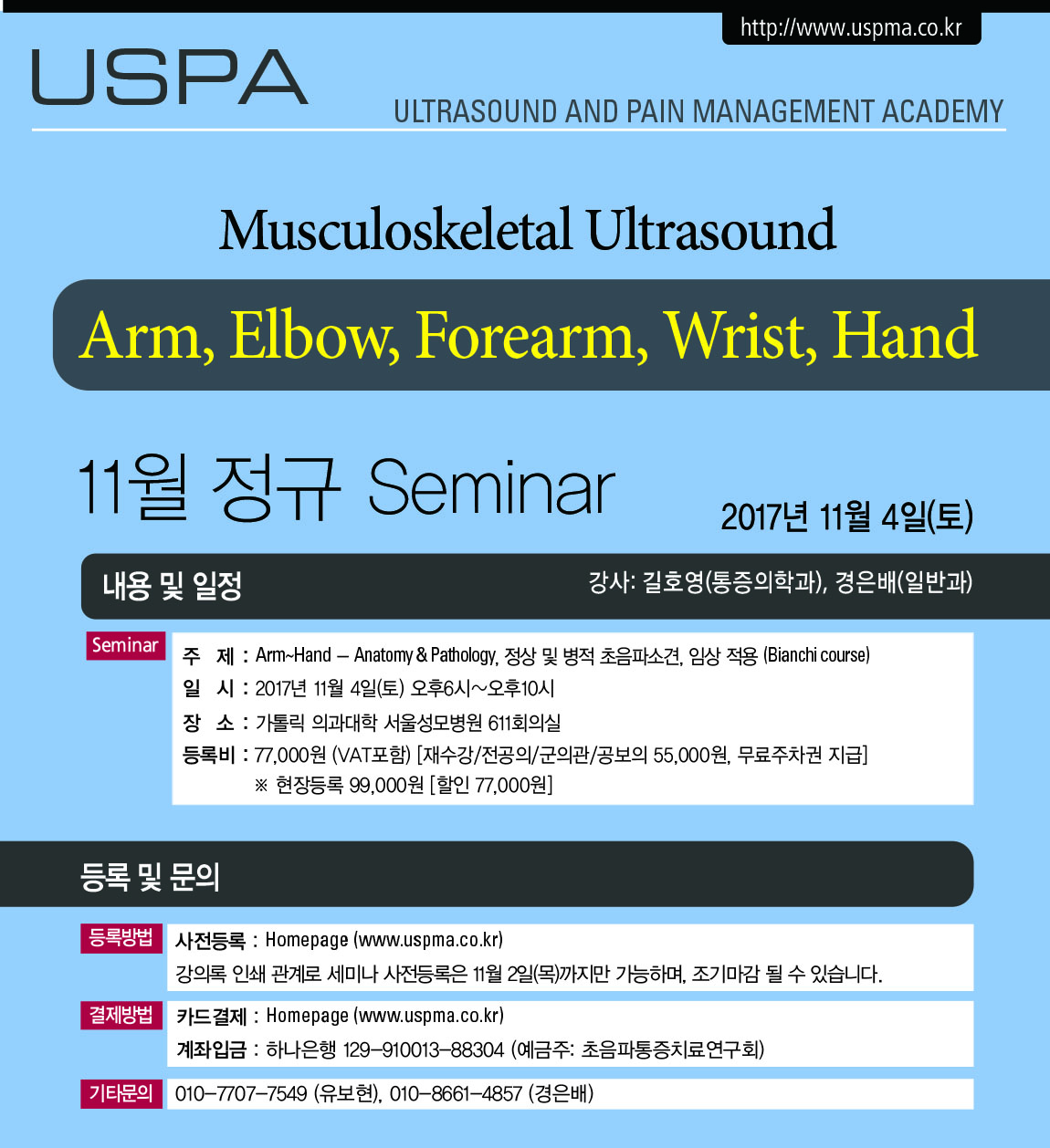 [초음파세미나] [11월4일(토)] 근골격계 초음파 세미나 - Arm~Hand