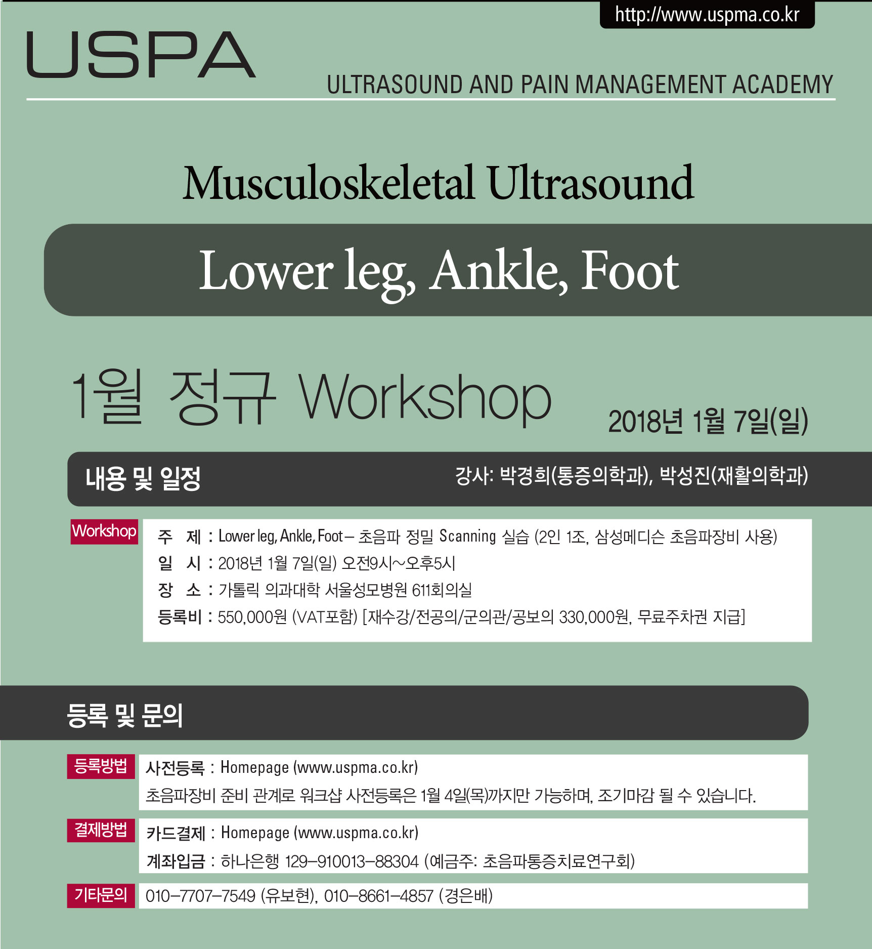 [초음파워크샵] [1월7일(일)] 근골격계 초음파 워크샵 - Lower leg, Ankle, Foot