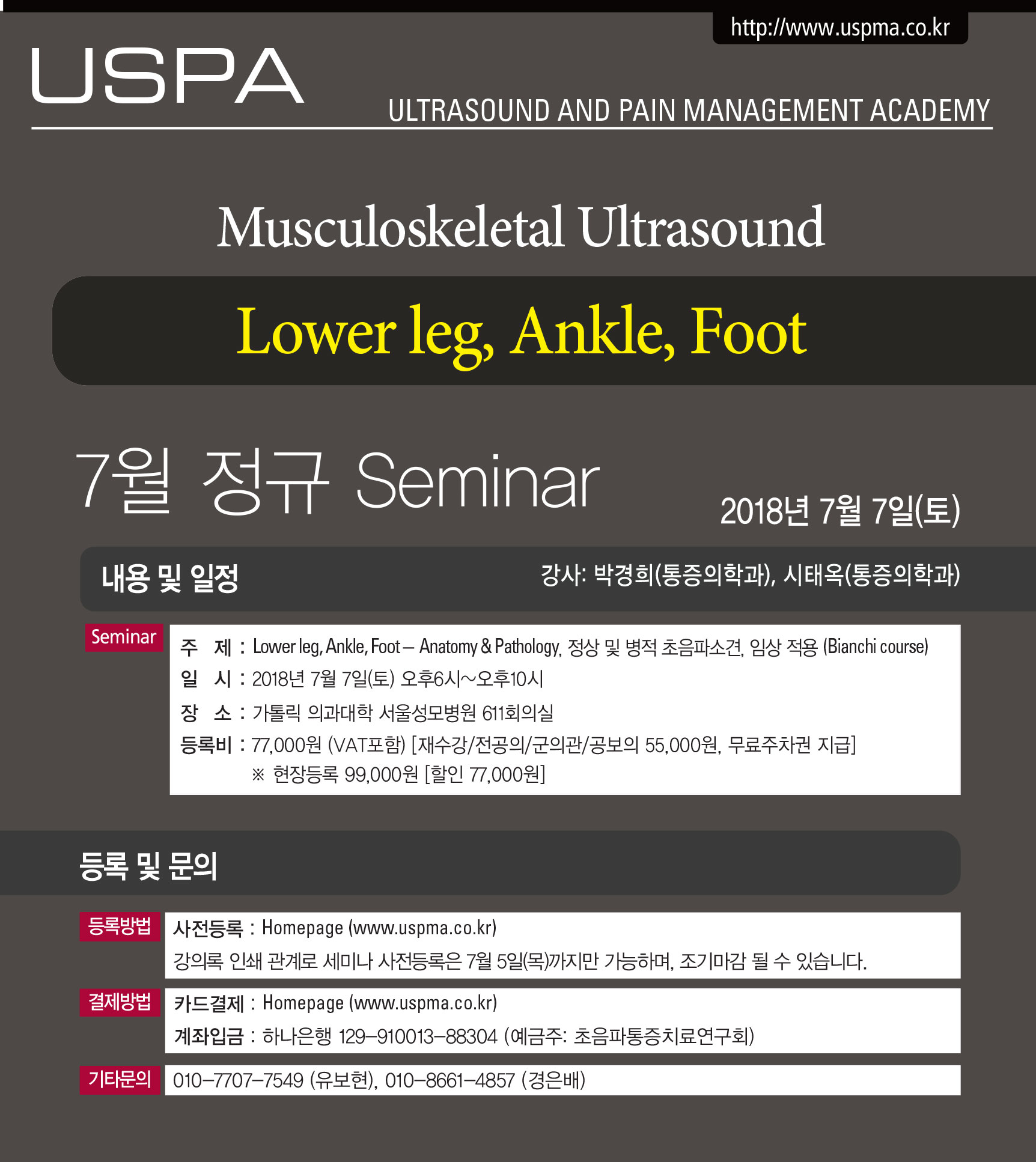[초음파세미나] [7월7일(토)] 근골격계 초음파 세미나 - Lower leg, Ankle, Foot