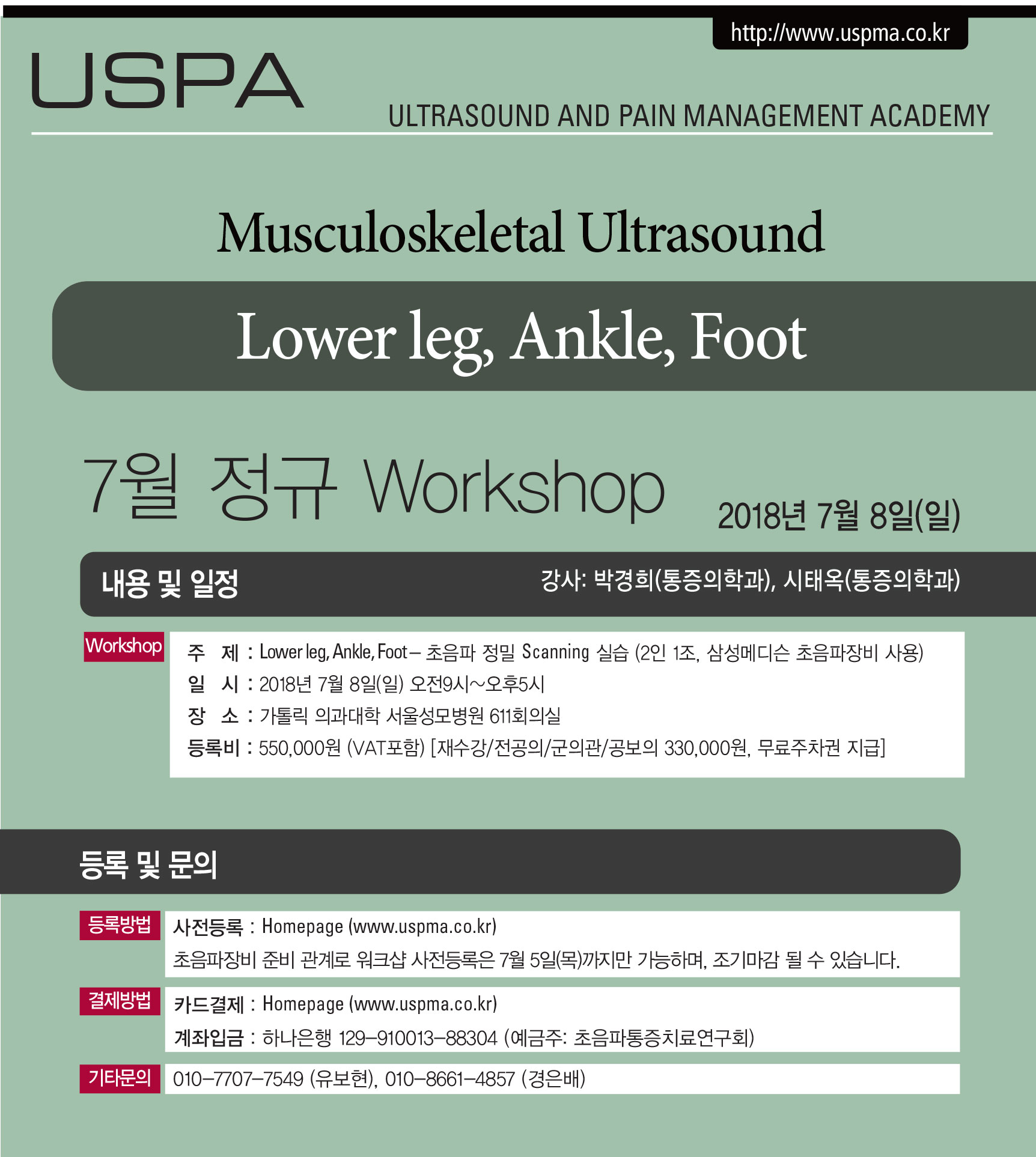 [초음파워크샵] [7월8일(일)] 근골격계 초음파 워크샵 - Lower leg, Ankle, Foot