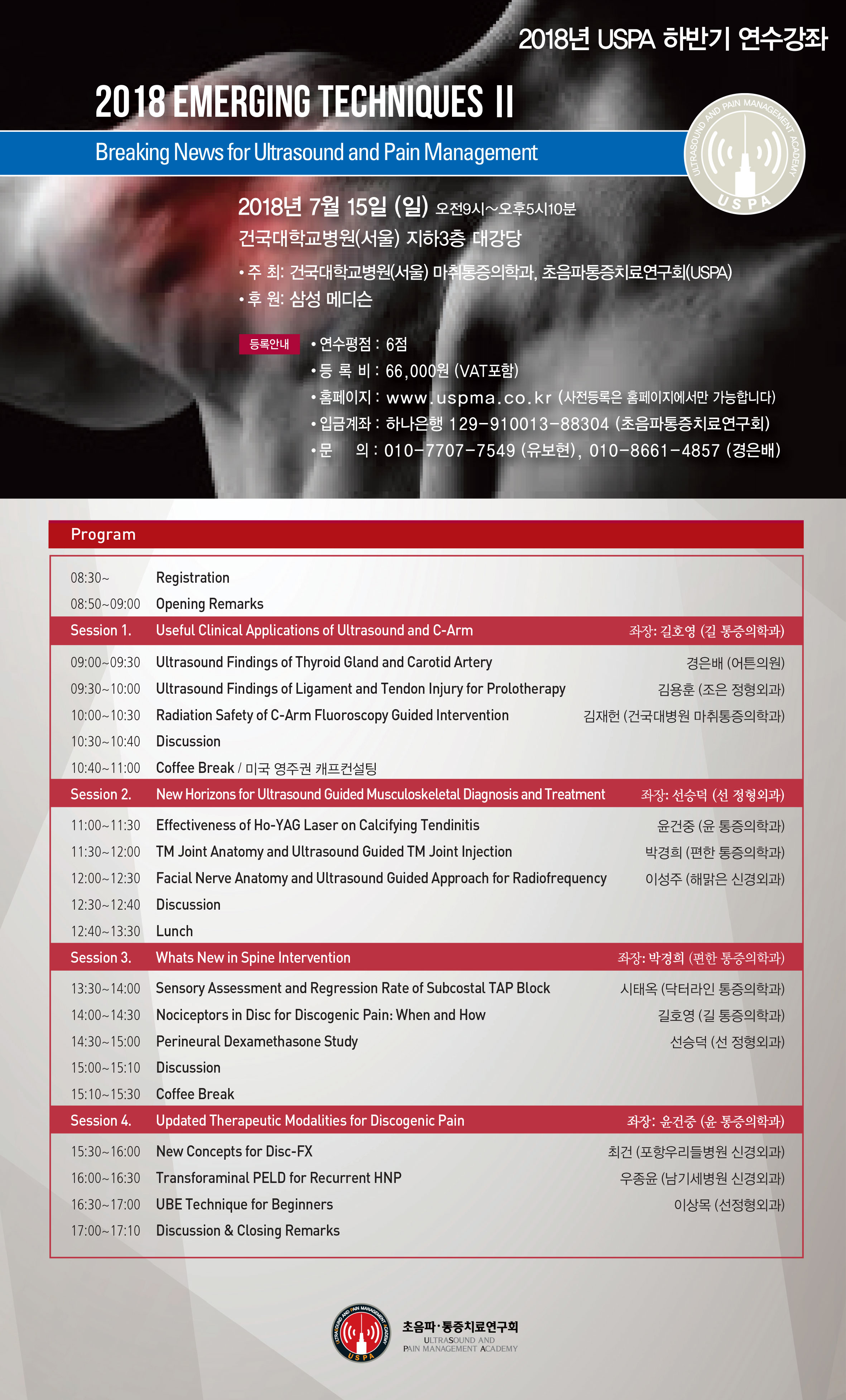 [연수강좌] [7월15일(일)] 2018 하반기 연수강좌 : Breaking News for Ultrasound and Pain Management