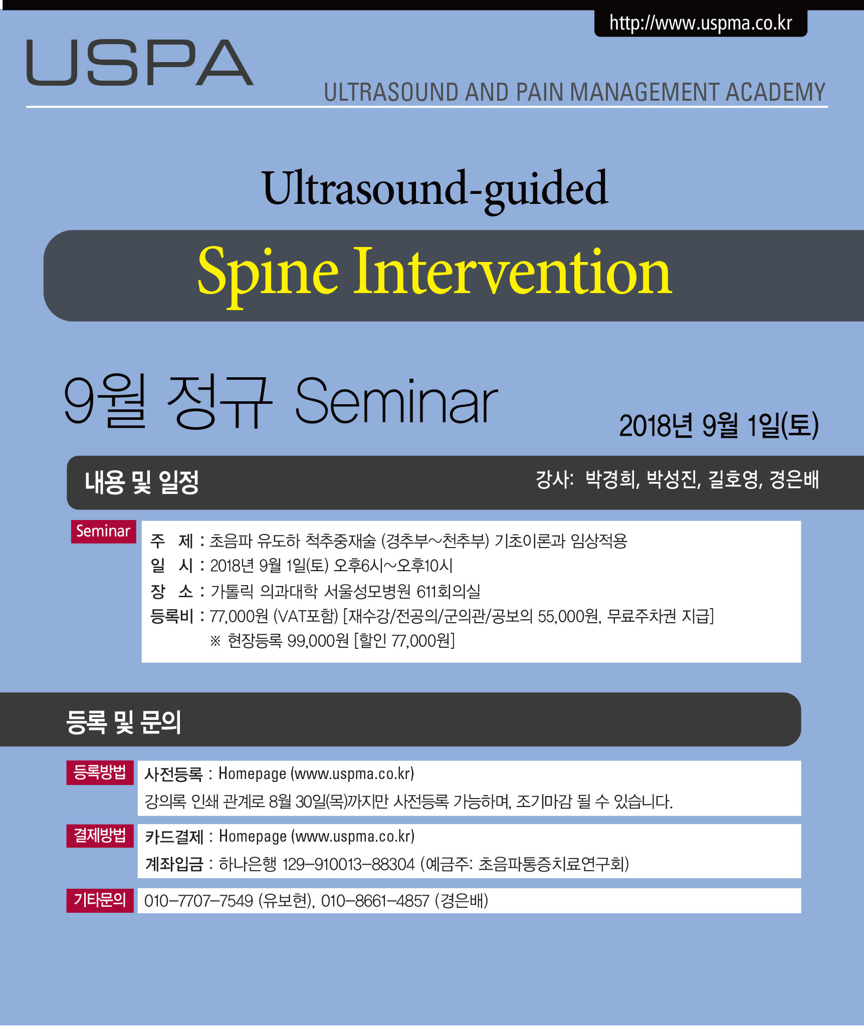 [초음파세미나] [9월1일(토)] Ultrasound-guided Spine Intervention