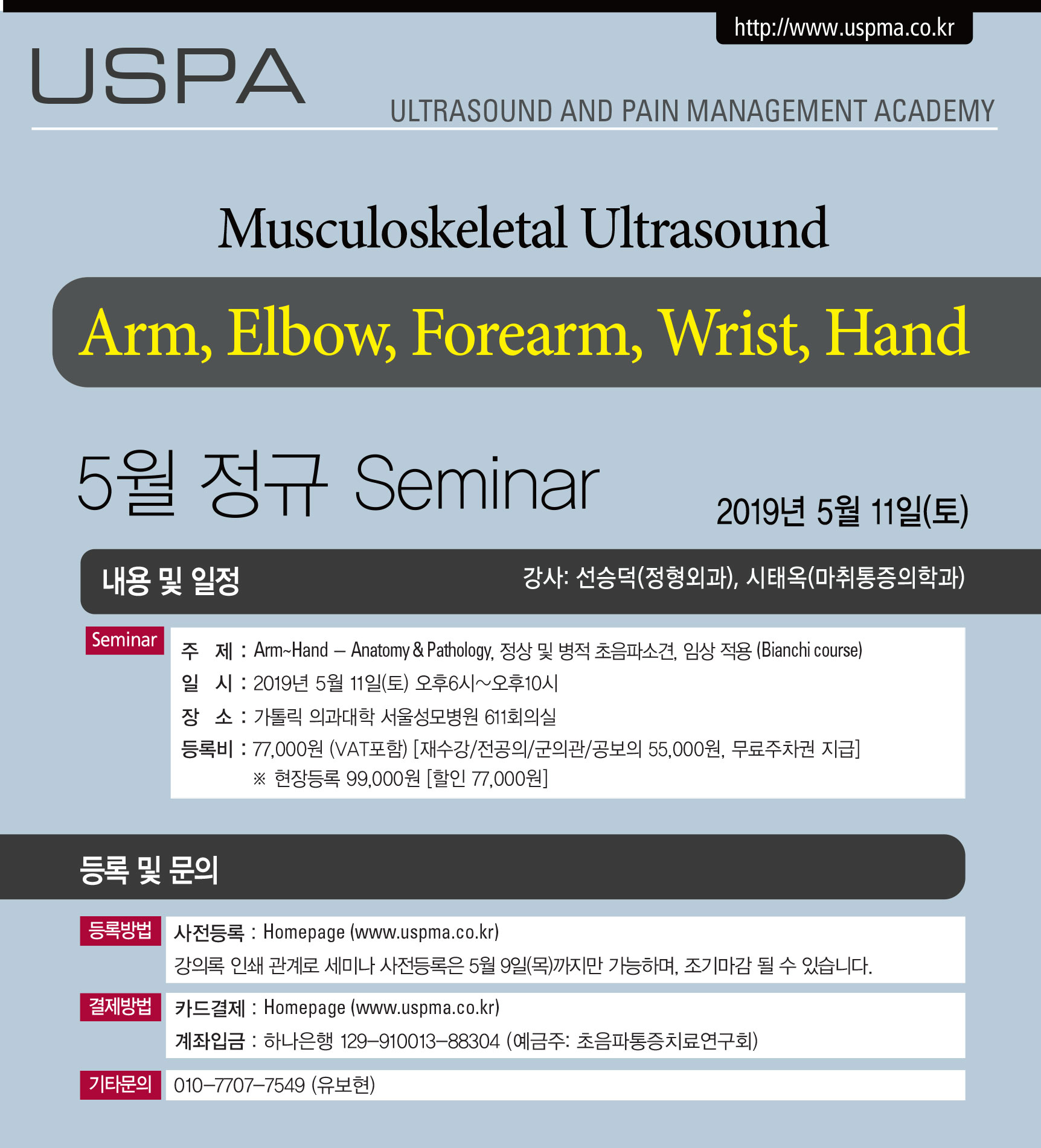 [초음파세미나] [5월11일(토)] 근골격계 초음파 세미나 - Arm~Hand
