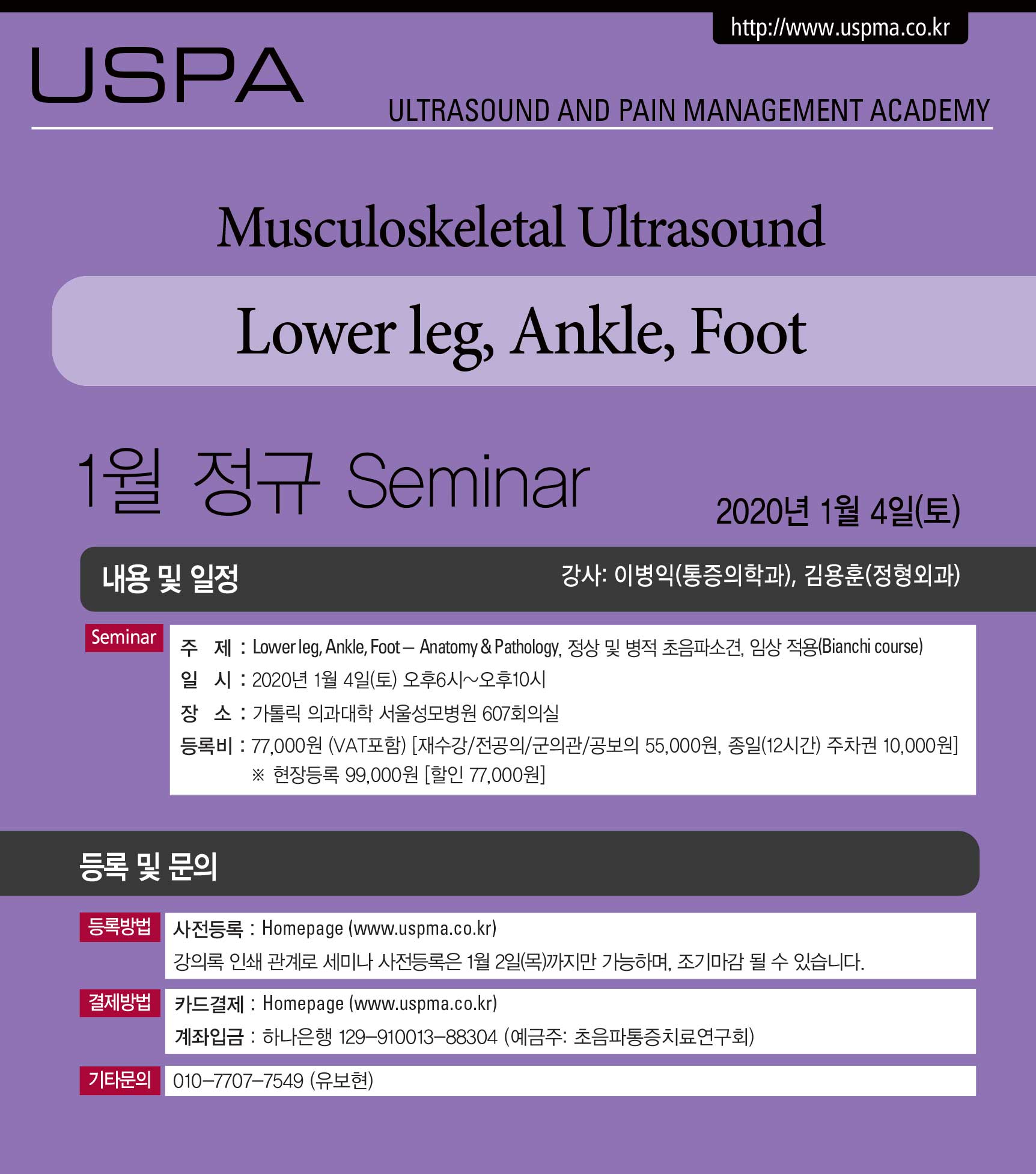 [초음파세미나] [1월4일(토)] 근골격계 초음파 세미나 - Lower leg, Ankle, Foot